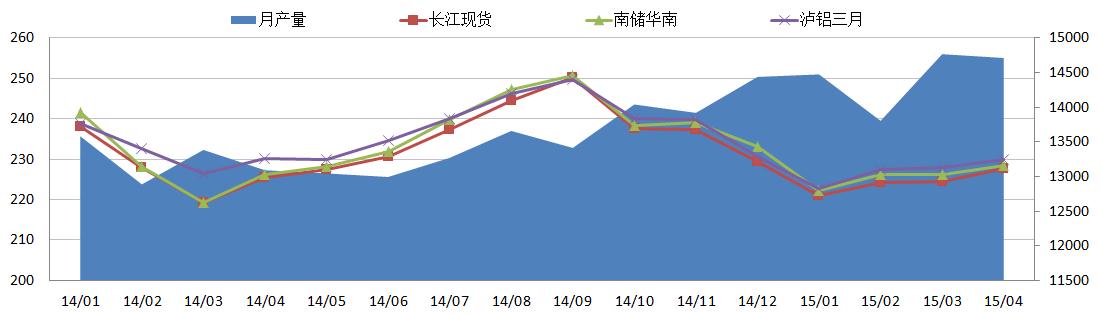 電解鋁現貨價格低位震蕩,市場需求偏弱。數據顯示,我國電解鋁的產量持續增長,4月份電解鋁產量為255.1萬噸,同比增加12.2%,日均產量8.5萬噸,1-4月累計過剩28.56萬噸,供應壓力增大。國際鋁價持續在低位波動,LME三個月鋁價一直低位維持在1800美元以下。1-4月市場需求的不景氣的房地產和汽車行業對鋁的需求推動有限,美元指數保持強勁對鋁價形成打壓,歐元區經濟復蘇不樂觀,進一步拉低了市場對電解鋁的需求。受電價優惠及氧化鋁價格下滑等因素影響成本下滑,預計電解鋁價格將延續低位區間波動。