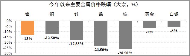 大宗商品價格走低。今年以來,全球大宗商品價格出現(xiàn)顯著下跌現(xiàn)象,并引起近期大宗商品的拋售潮。有色金屬全線潰退,其中,鋁價下跌13%、銅價下跌12.5%。大宗商品價格走低暗示著全球經(jīng)濟增長動能相對缺失,綜合分析成因,主要包括以下三點:一是大宗商品總體處于供過于求的狀態(tài);二是美元走強,9月份加息預(yù)期增強;三是新興市場經(jīng)濟體增長疲軟。