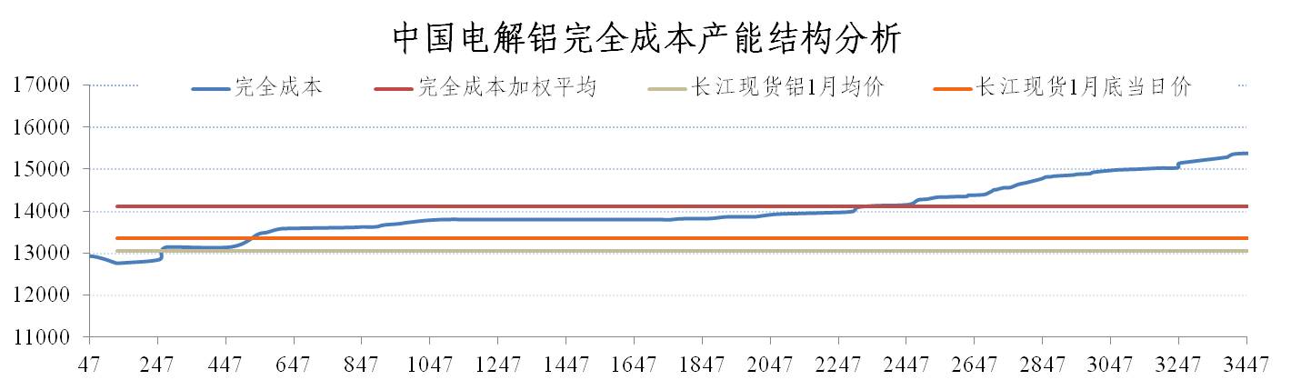 電解鋁生產成本方面。電解鋁生產成本呈現穩中微降態勢。2月份全國電解鋁加權平均完全成本 13794 元/噸,較1月份上升166元/噸。2月電解鋁成本僅小幅上升,而月內鋁價在政策指引下表現強勢。從絕對數字對比來看,電解鋁企業虧損情況本月有所緩解;完全成本來看,全行業噸鋁月均理論虧損 137元。整體來看,電解鋁企業成本有回落的趨勢。據了解,目前山東鋁企外購煤炭價格已經出現明顯下滑,對自備電廠企業成本影響顯著,加之氧化鋁調整趨勢不改,預計3月電解鋁企業整體成本將下降。