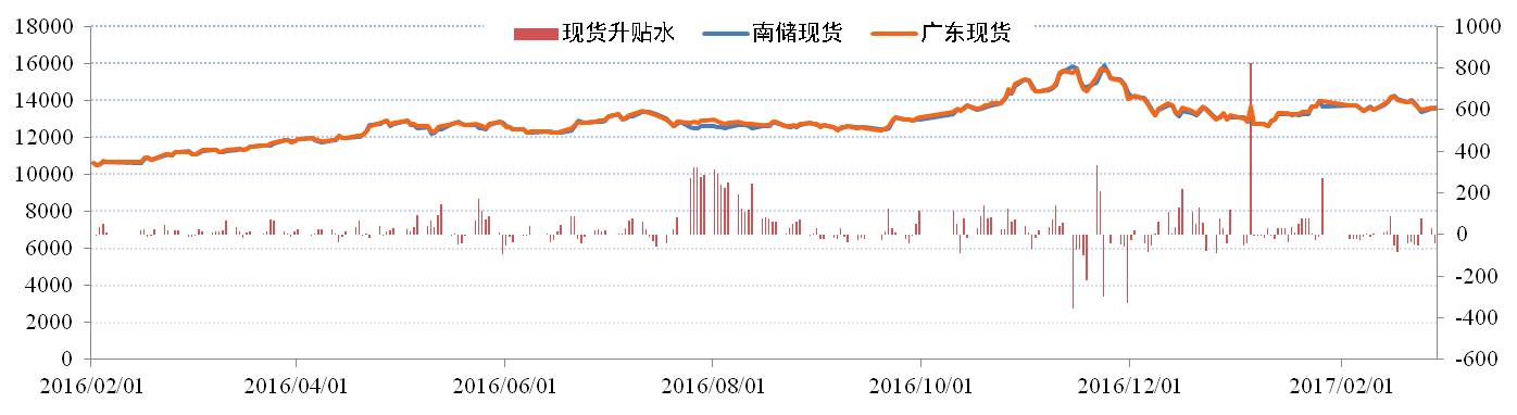 現貨價格方面:2月份,國內鋁價波動區間加寬,基本面與政策面的博弈十分激烈,因此價格呈現大幅波動局面。截止到3月10日,長江現貨市場價報收于13,520元/噸,環比上漲0.22%;華南現貨市場價報收于13,550元,環比上漲0.37%。國內鋁錠現貨社會總庫存為126.66萬噸,環比增加19%;廣東地區社會庫存34.9萬噸,環比增加112%;近兩月廣東地區庫存增加明顯。