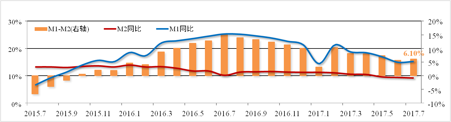 7月份M2增速為9.2%,較上月下滑0.2個(gè)百分點(diǎn),再創(chuàng)歷史新低。M1與M2 差額為6.1%,較上月擴(kuò)大0.5個(gè)百分點(diǎn)。社會融資規(guī)模累計(jì)168.01萬億元,其中 實(shí)體經(jīng)濟(jì)融資規(guī)模114.31萬億元,同比增長13.5%,較上月擴(kuò)大0.4個(gè)百分點(diǎn)。
