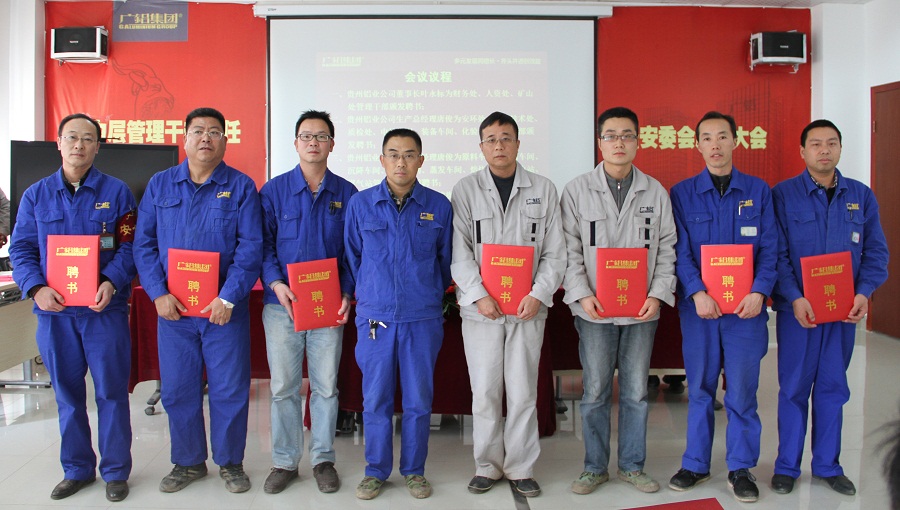 發(fā)稿時(shí)間:2015-01-152015年1月13日,貴州鋁業(yè)公司和貴州礦業(yè)公司2015年中層管理干部聘任大會(huì)暨安全環(huán)保責(zé)任人任命大會(huì)在貴州鋁業(yè)公司綜合辦公樓五樓會(huì)議室隆重舉行。公司董事長(zhǎng)葉永標(biāo)、礦業(yè)公司總經(jīng)理張戰(zhàn)旗以及生產(chǎn)總經(jīng)理唐俊分別為2015年度中層管理干部頒發(fā)了聘書。