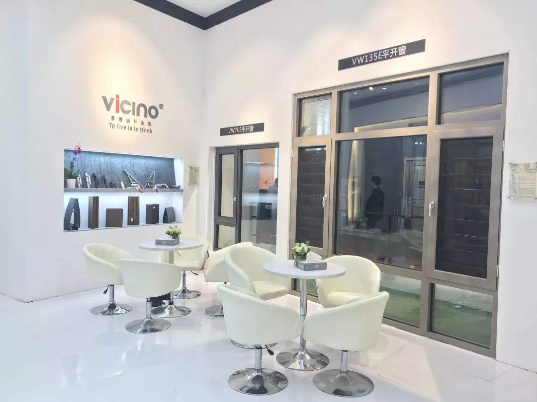 廣鋁集團本屆展會設計簡潔高端,以韋思諾vicino品牌為主,其中有隔熱平開門、節能平開窗、隔熱提升推拉門、推拉窗等,型材簡潔而不失穩重,給人一種大氣而安全牢固的溫馨感,得到了眾多買家的認可和關注。