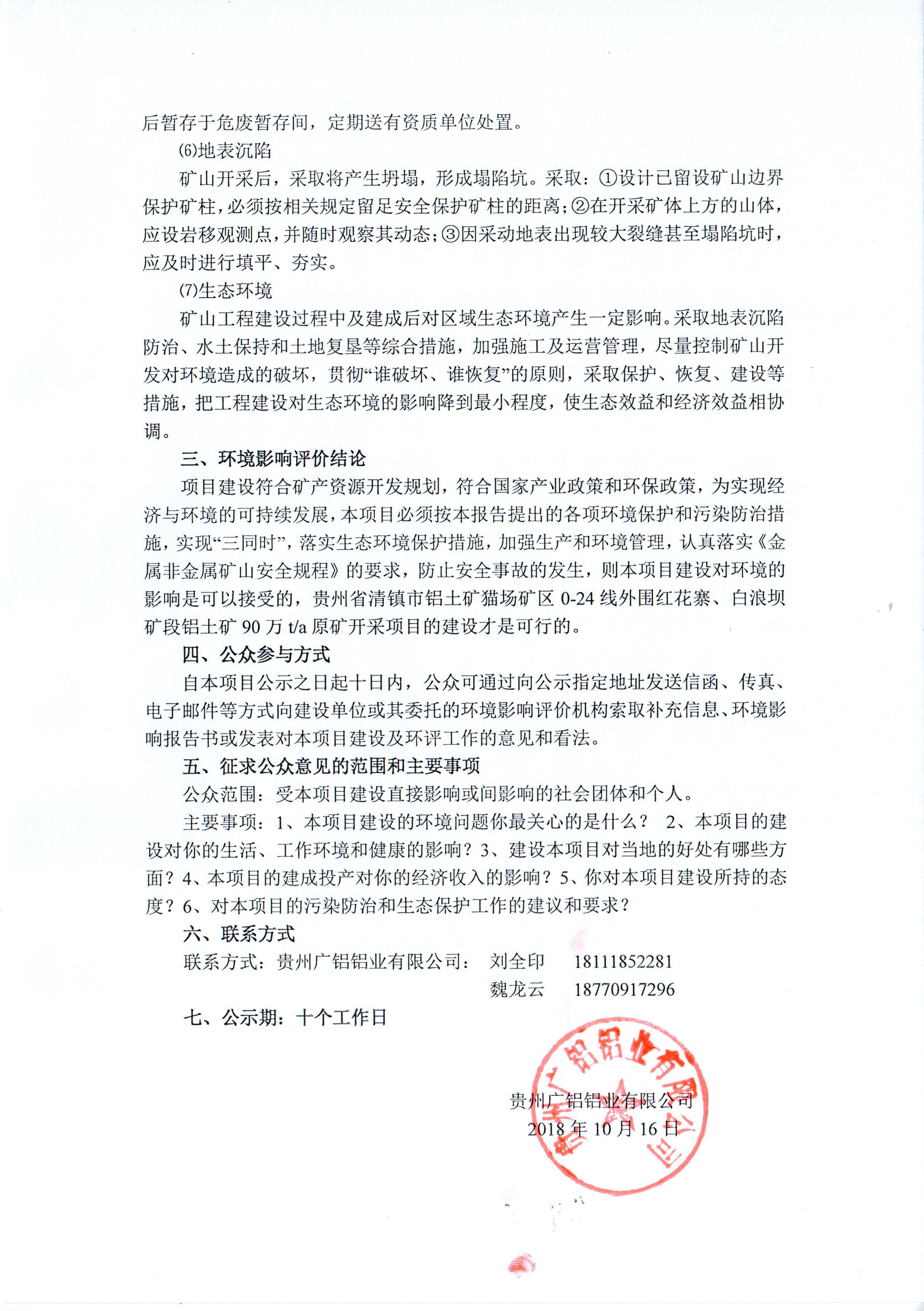 新聞中心 集團(tuán)動(dòng)態(tài) 行業(yè)資訊 廣鋁期刊 下載 廣鋁手機(jī)APP 廣鋁 for Android 手機(jī)助手掃一掃 廣鋁 for iPhone 手機(jī)助手掃一掃 ———————————— 廣鋁集團(tuán)微信公眾號(hào) 添加方式: 微信號(hào)請(qǐng)搜索:GaluminiumGroup 中文昵稱請(qǐng)搜索:廣鋁集團(tuán) 或直接用手機(jī)微信 掃描左側(cè)二維碼 ———————————— www.zhongcheng.net.cn 貴州省清鎮(zhèn)市鋁土礦貓場(chǎng)礦區(qū)鋁土礦項(xiàng)目環(huán)境影響評(píng)價(jià)第二次公示 發(fā)稿時(shí)間:2018-10-18